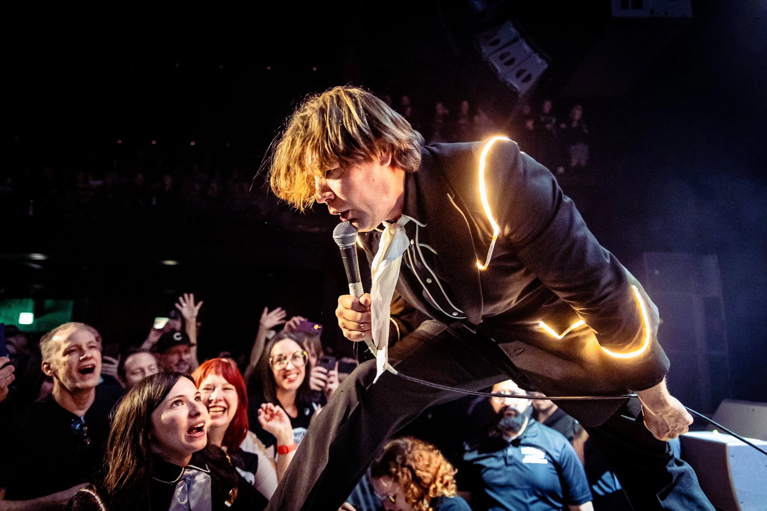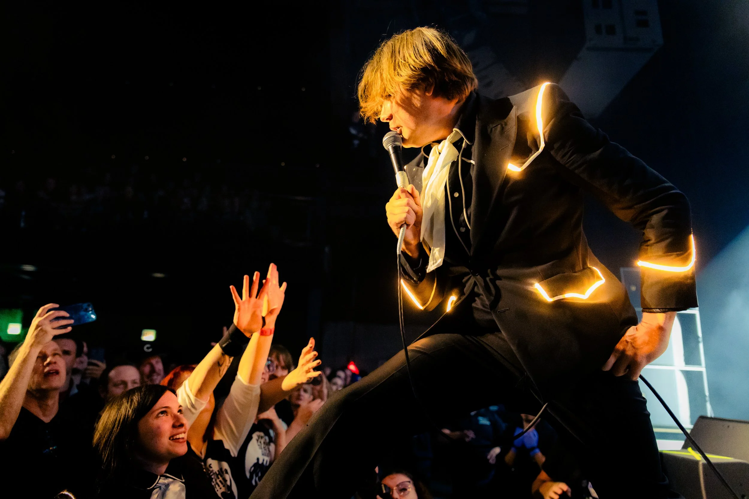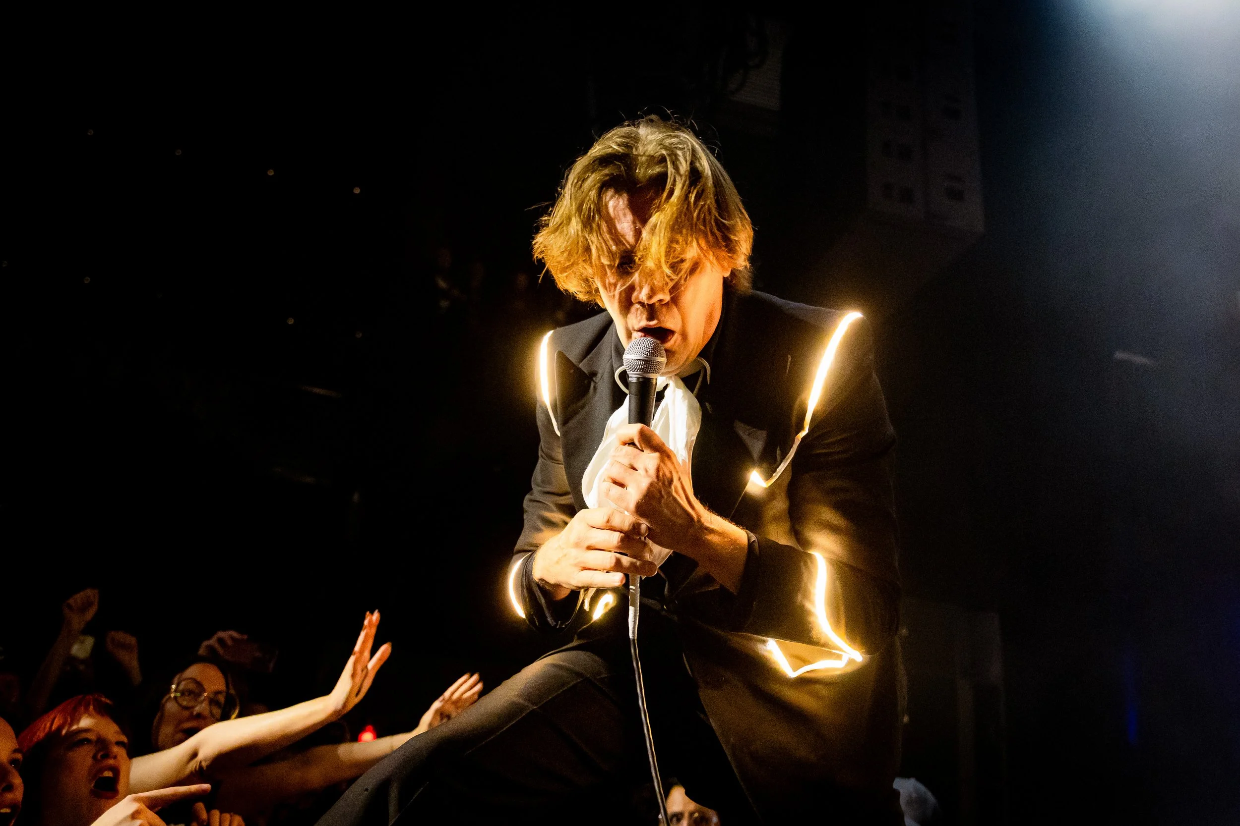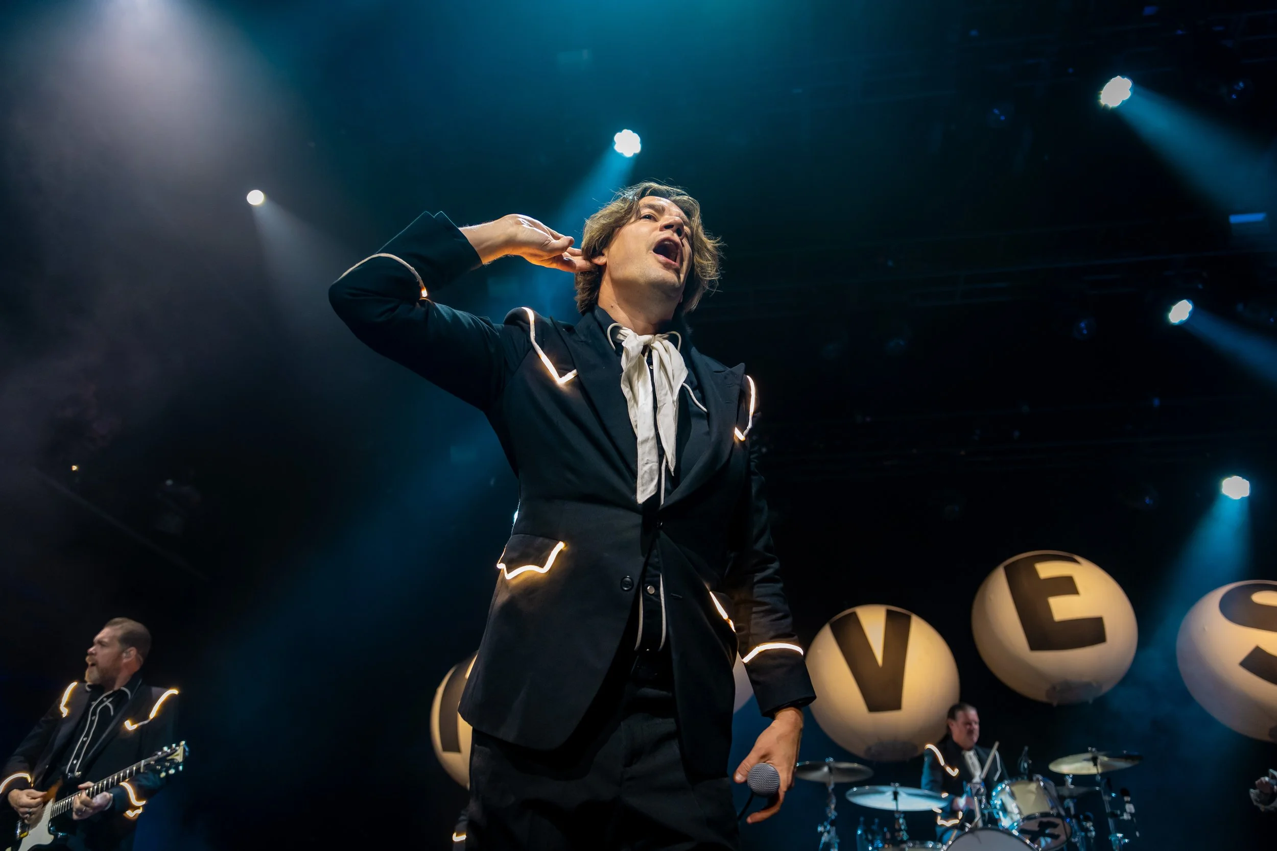 The room continued to buzz with anticipation until the lights dimmed for the main act, and The Hives hit the ground running, keeping their feet on the gas for a 90-minute rousing and raucous show. The band members all donned matching suits that sported a lit-up strip, which was fitting because their energy was so electric.